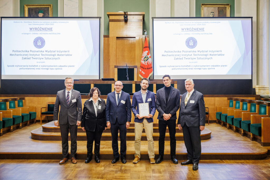 They received the award during the competition gala at AGH University of Krakow together with dr hab. inż. Paweł Popielarski, Director of Institute of Materials Technology, who represented Politechnika Poznańska and Wydział Inżynierii Mechanicznej Politechniki Poznańskiej.